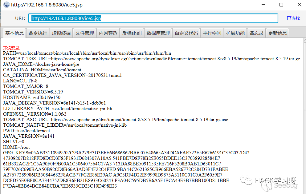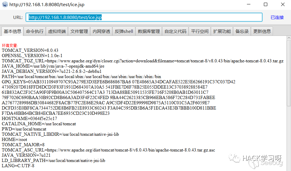 這里隨便連接一個jsp即可拿到webshell
