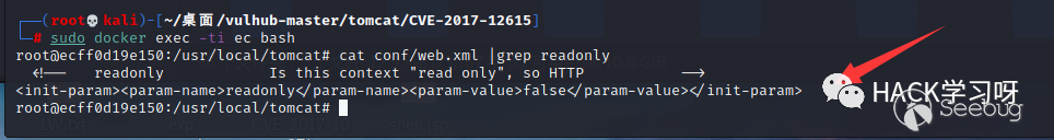 sudo docker exec -ti ec bash //進入docker容器cat conf/web.xml | grep readonly