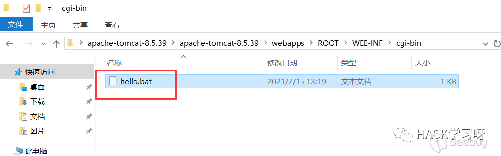 在該目錄下創建一個hello.bat