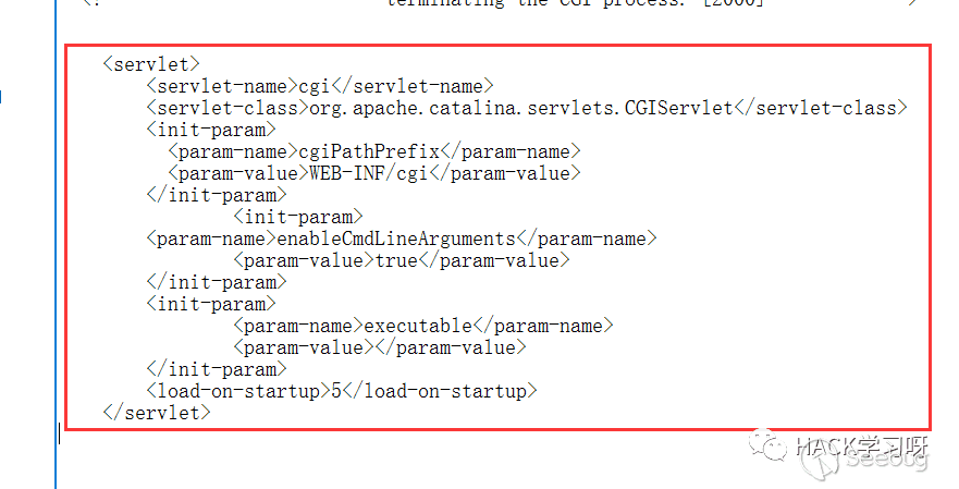 Tomcat的 CGI_Servlet組件默認是關閉的,在conf/web.xml中找到注釋的 CGIServlet部分,去掉注釋,并配置enableCmdLineArguments和executable