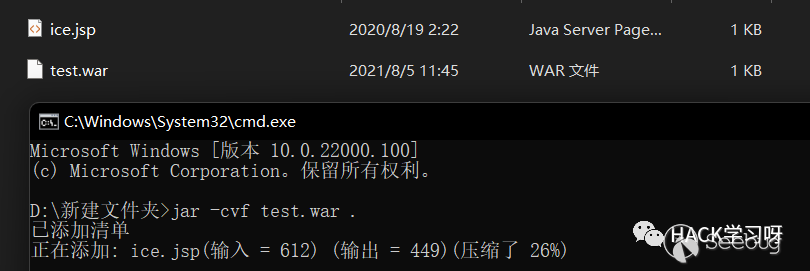 首先將ice.jsp打包成test.war