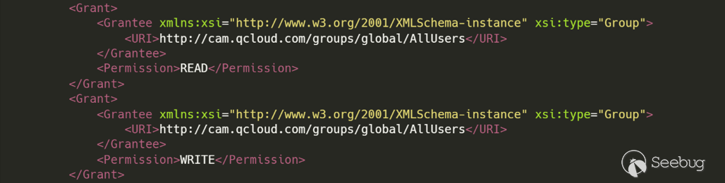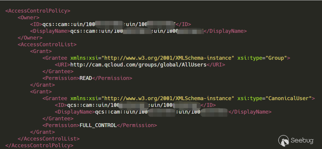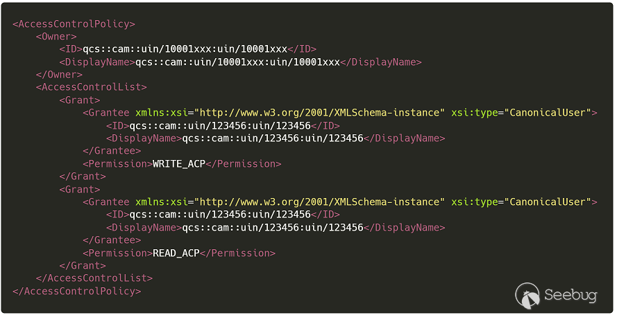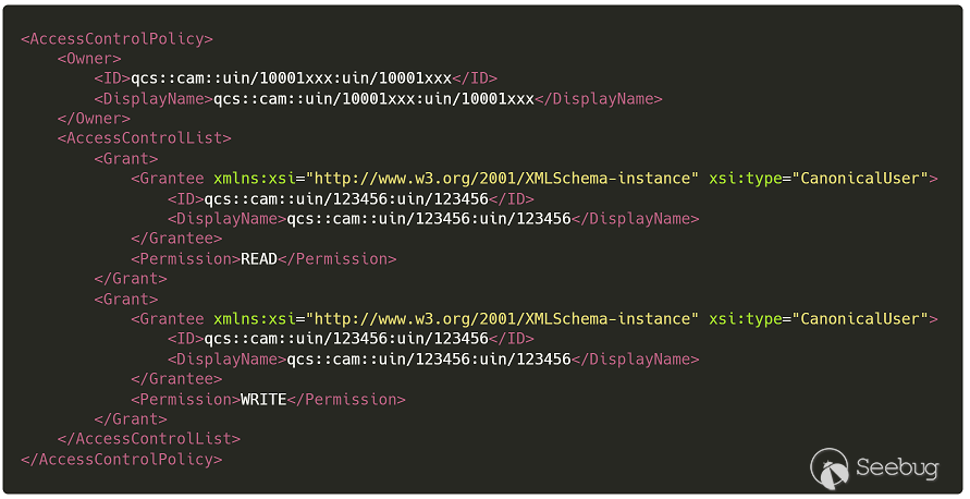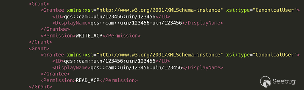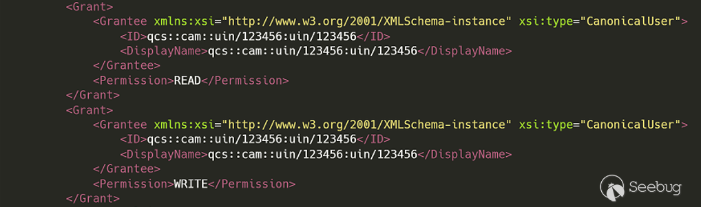 從XML內容可見,在控制臺新增一個擁有數據讀取、數據寫入權限的賬號后, ACL中新增了如下配置: