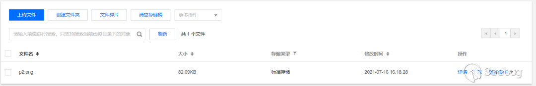 在我們測試的這個存儲桶中,并未設置Policy策略,并且存在著一個名為p2.png的對象。