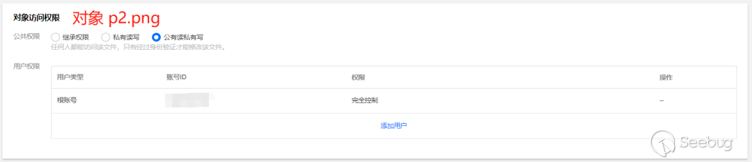 實際原理很簡單,我們為對象p2.png設置了公有讀私有寫ACL策略,此時對象資源p2.png的ACL如下: