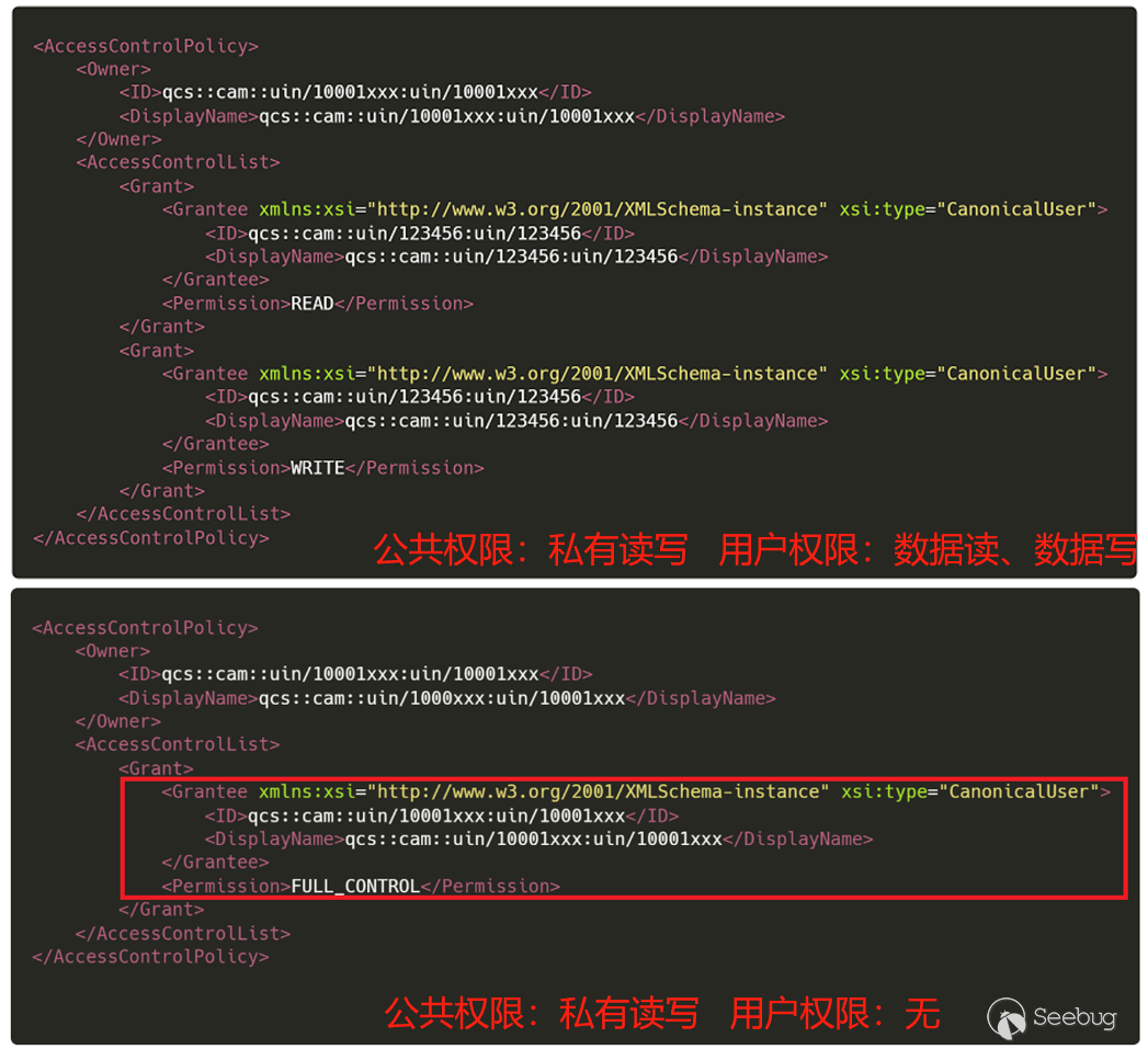 對比一下公共權限章節中私有讀寫部分的ACL,我們發現了一個問題,見下圖: