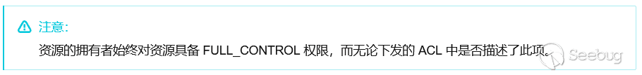 資源的擁有者,即Owner始終對資源具備完全控制權,無論ACL中是否存在此項。