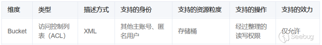 從ACL可見,與存儲桶的ACL配置項完全一樣,只不過這里的ACL作用于目標對象而存儲桶ACL作用于存儲桶。