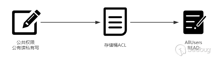 此條配置授予了AllUsers用戶組的READ的權限,按權限分類來說,屬于“匿名用戶公有讀”權限,示意圖如下: