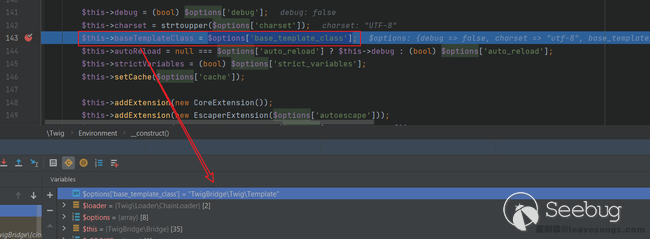 在此處下斷點可以看到,這個__env是一個\Illuminate\View\Factory對象,原來是Twig共享了Laravel原生View模板引擎中的全局變量。