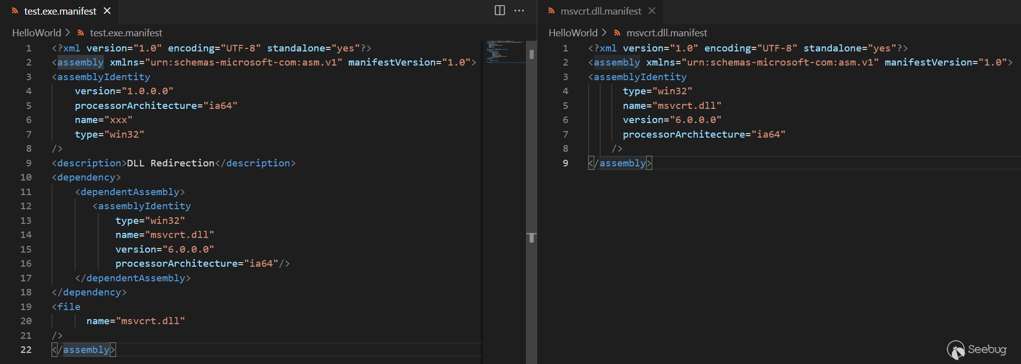 還可以使用 manifest 配置文件(xml文件),優先級高于 .local,詳細可以參考 https://docs.microsoft.com/en-us/windows/win32/sbscs/application-manifests,構建目錄結構如下: