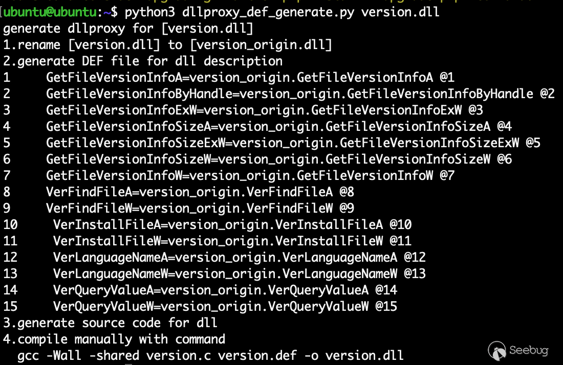 這里我編寫了個 Python 腳本可以根據 dll 自動生成模塊定義文件dllproxy_def_generate.py,使用如下: