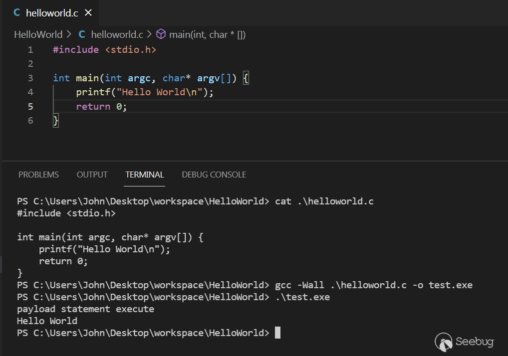 我們編寫了個 HelloWorld 的 C 程序,生成惡意的 msvcrt.dll 進行演示,目錄結構為: