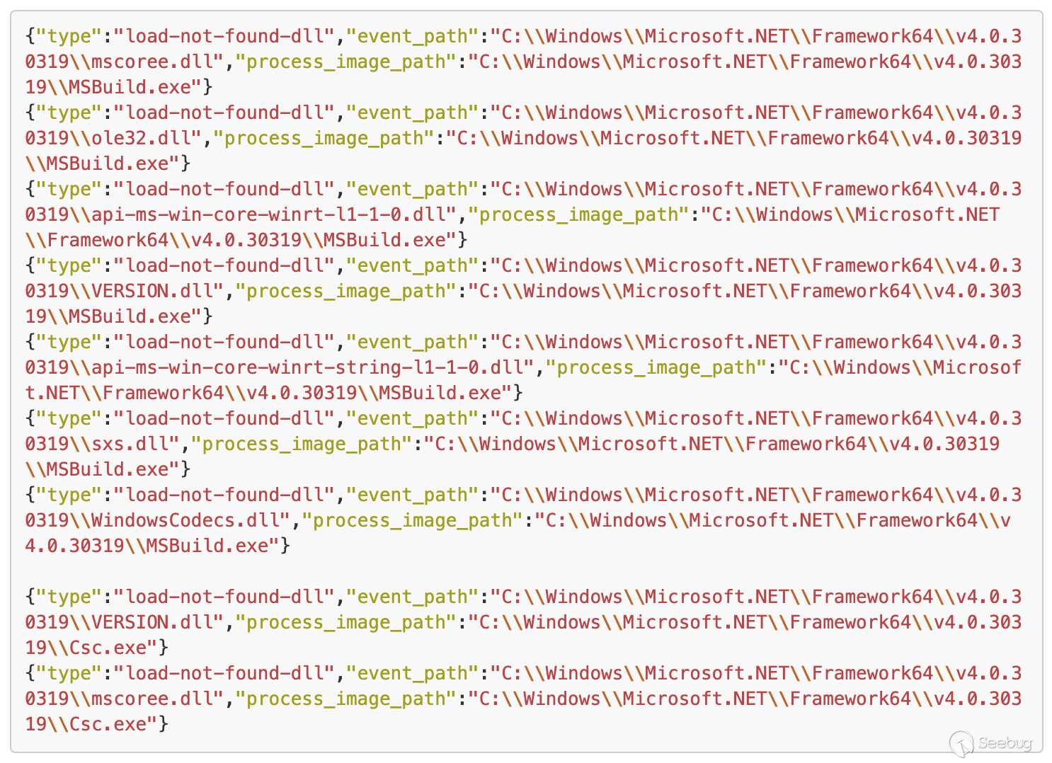 安全研究者提出了使用 dll 劫持來優化后門植入的過程(https://www.a12d404.net/ranting/2021/01/17/msbuild-backdoor.html),其研究過程發現 MSBuild.exe 啟動過程中會去優先加載指定目錄的 dll,如下: