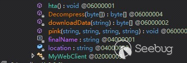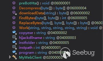 將DOTNET模塊拖到dnSpy中可以看到preBotHta的定義如下: