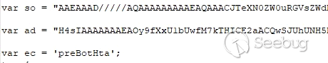 釋放的HTA文件包含兩個經過base64編碼的字符串:
