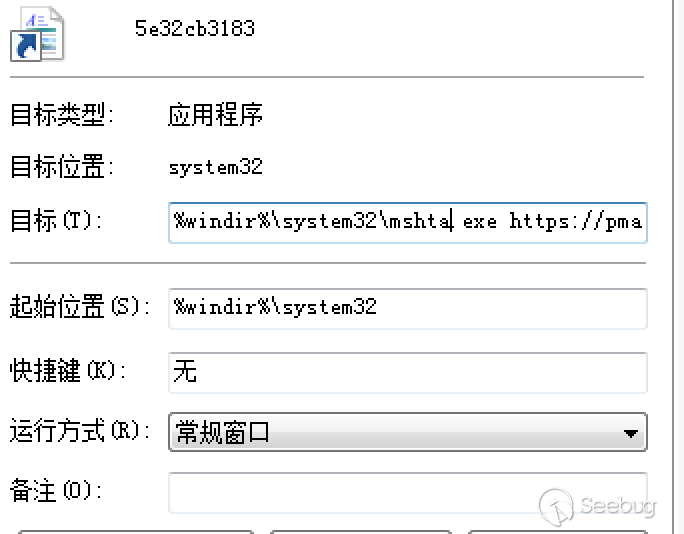 這一種攻擊方法是在郵件附帶一個壓縮過的lnk文件,lnk文件偽裝成文檔。一個典型的lnk如下:
