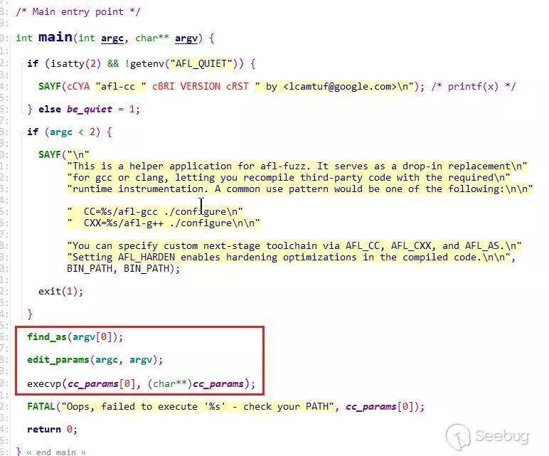 execvp(cc_params[0], (cahr**)cc_params)執行afl-gcc
