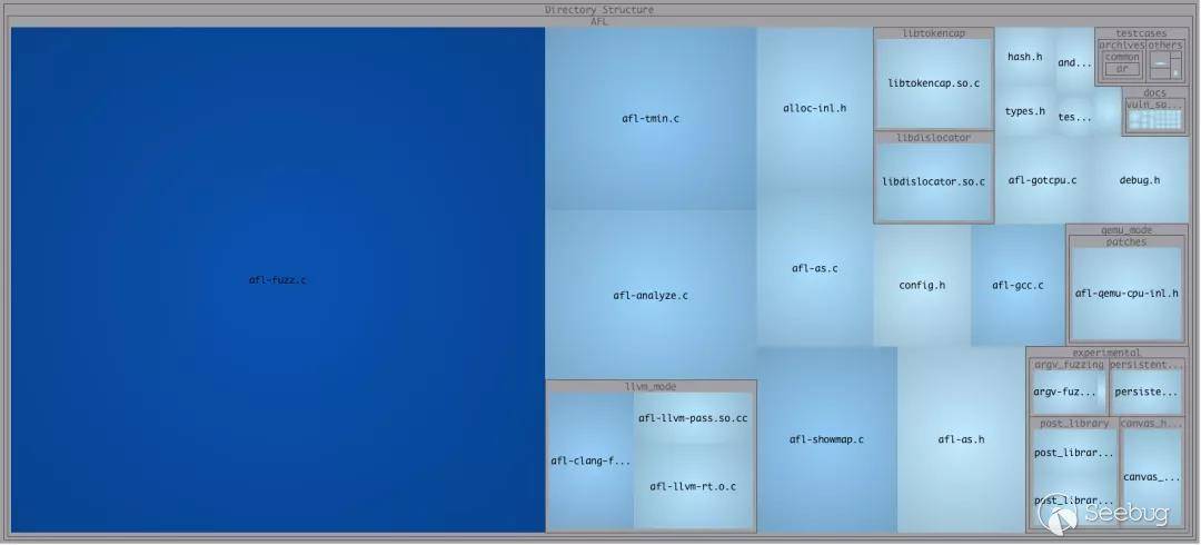 主要的代碼在 afl-fuzz.c 文件中,然后是幾個獨立模塊的實現代碼,llvm_mode 和 qemu_mode 的代碼量大致相當,所以分析的重點應該還是在AFL的根目錄下的幾個核心功能的實現上,尤其是 afl-fuzz.c,屬于核心中的重點。