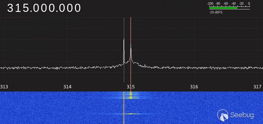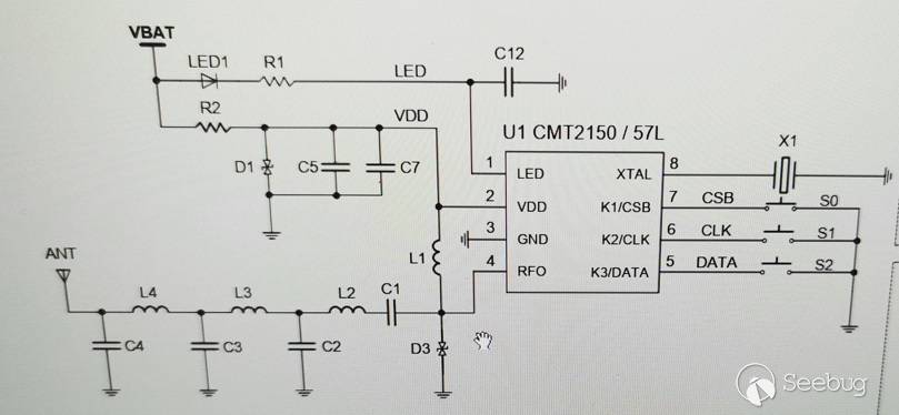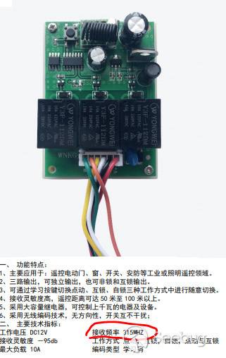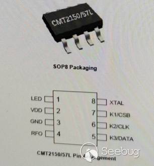 通過查看芯片文檔, 得知鑰匙的工作頻率為315Mhz。 默認采用的是1527的編碼方式。