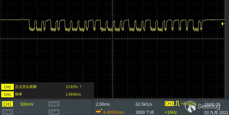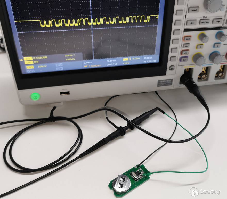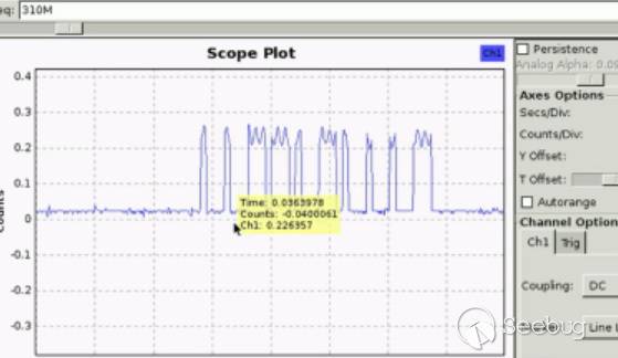 根據IC管腳定意, 接上示波器, 可以用來分析的小牛鑰匙的脈沖信號就展示在面前。