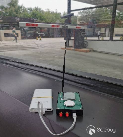 為了檢驗干擾攻擊的真實效果, 筆者在征得車主同意后, 用HackRF 對某款汽車做了測試。 從視頻 (https://v.qq.com/x/page/h32756atqlx.html) 中可以看到在開始干擾攻擊后, 汽車對遙控鑰匙立刻失去反應。