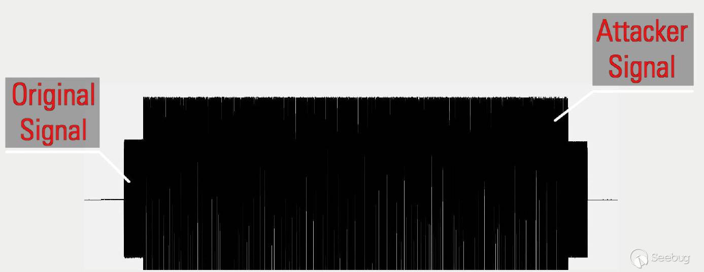 值得一提的是某些廠商在產品中會設計信號干擾檢測機制。 比如某款智能警報器一旦檢測到有干擾信號, 就會自動觸發警報。 因此高階的黑客會采用更智能的干擾方式, 比如Reactive Jamming, 跟傳統的干擾方式不同之處在于, 其并不是簡單粗暴的占用整個頻道, 而是將干擾信號“隱藏”在真實的發送信號中, 以便繞過目標的檢測機制。