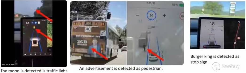 第二個為特斯拉ADAS欺騙視頻 (https://v.qq.com/x/page/s33001cu5of.html)有意思的是大家可以看出其識別算法并不區分人類的具體性別, 事實上通過調整投放物體的大小, 特斯拉分別將美女圖像識別成了小轎車或卡車等物體。