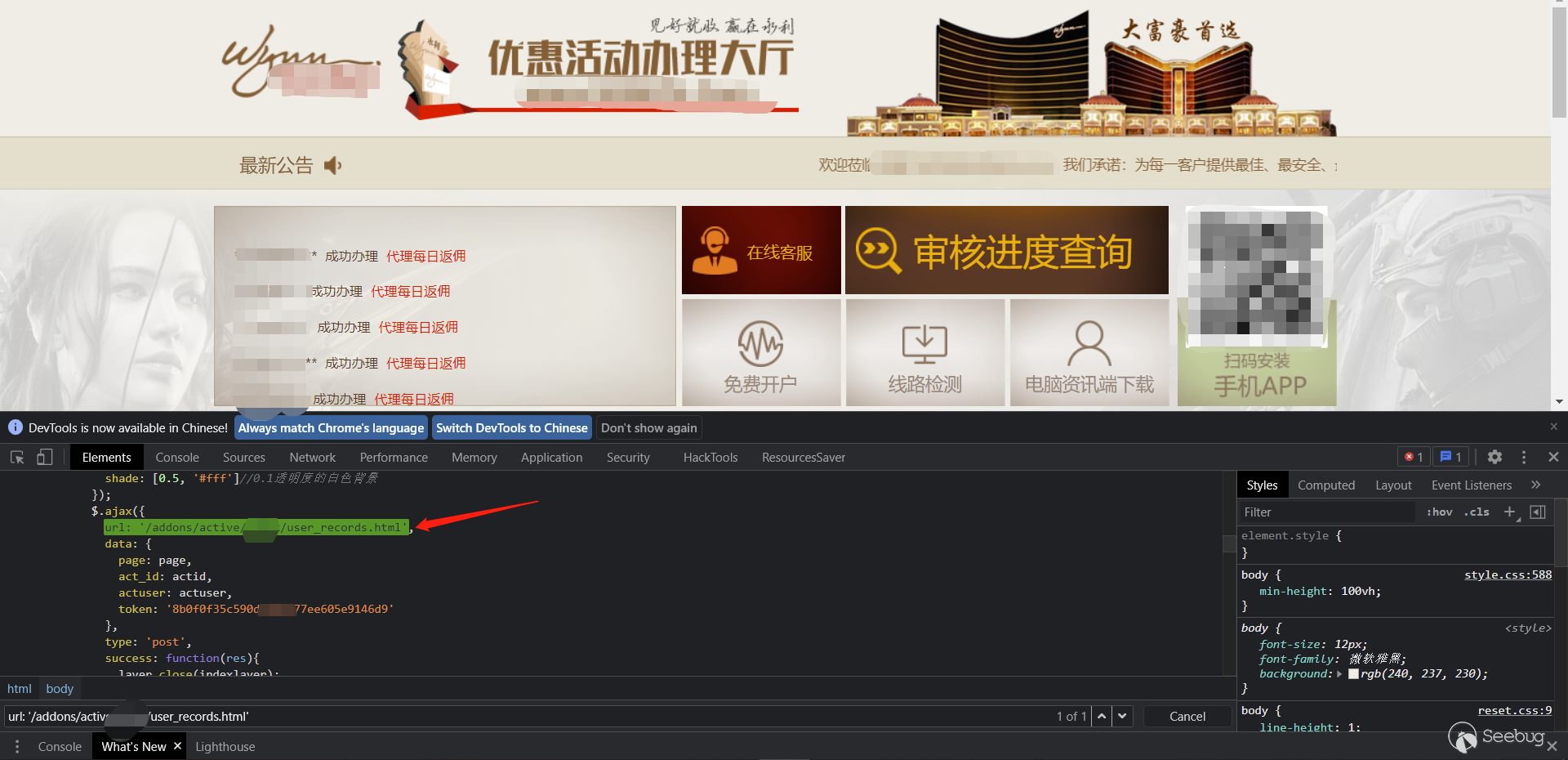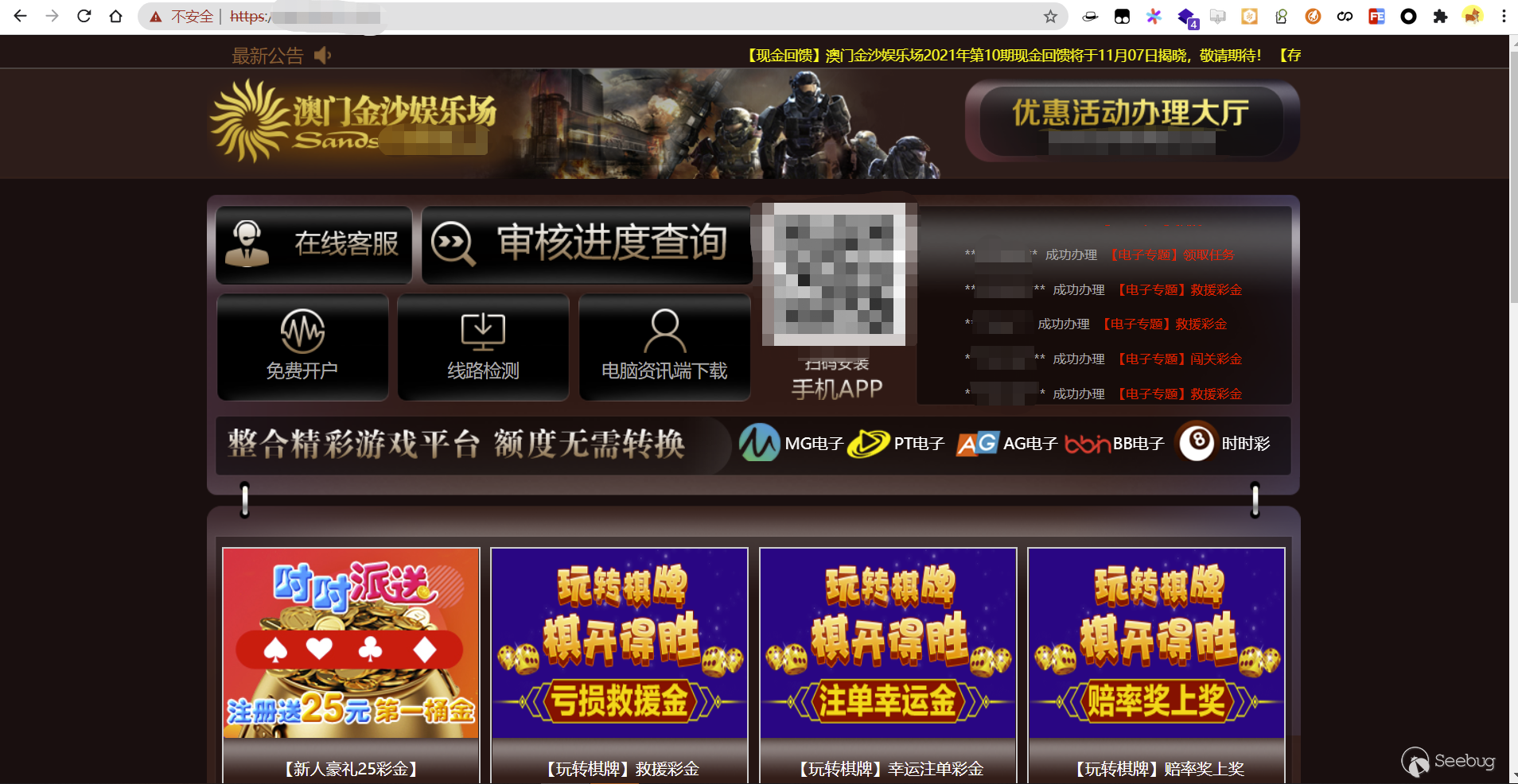 以下即為一個常見的博彩類站點,首先我們可以對該類站點的功能進行盤點。