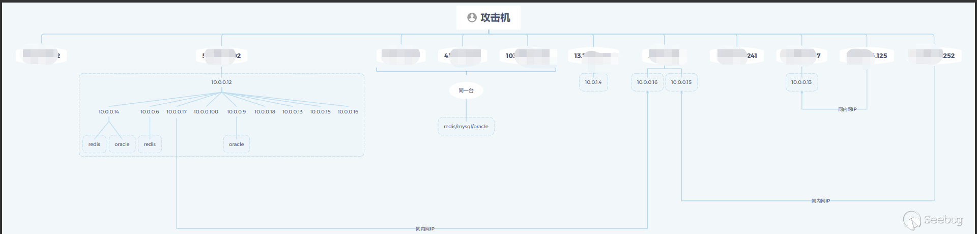 在拿下的多臺服務器后,打掃戰場成果的時候,我們發現有幾臺服務器的權限為root。使用fscan對內網快速掃描了一下,發現內網IP中開放了不少mysql,redis,oracle等服務。該內網中使用大量的反向代理,有不少公網IP在拿下權限后指向的卻是相同的內網服務器。其中,居然還部署了JumpServer堡壘機,不得不說,這個目標確實有點東西,通常堡壘機也是為了集中管理服務器準備的。但是很遺憾,通過之前爆出的JumpServer RCE漏洞并沒有利用成功。