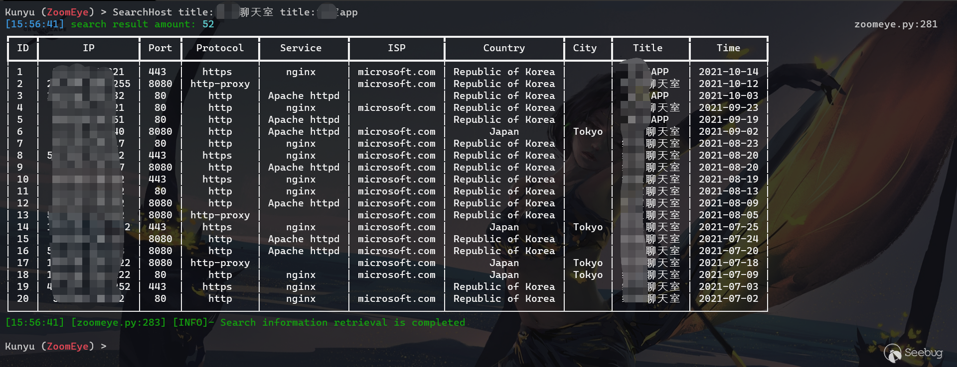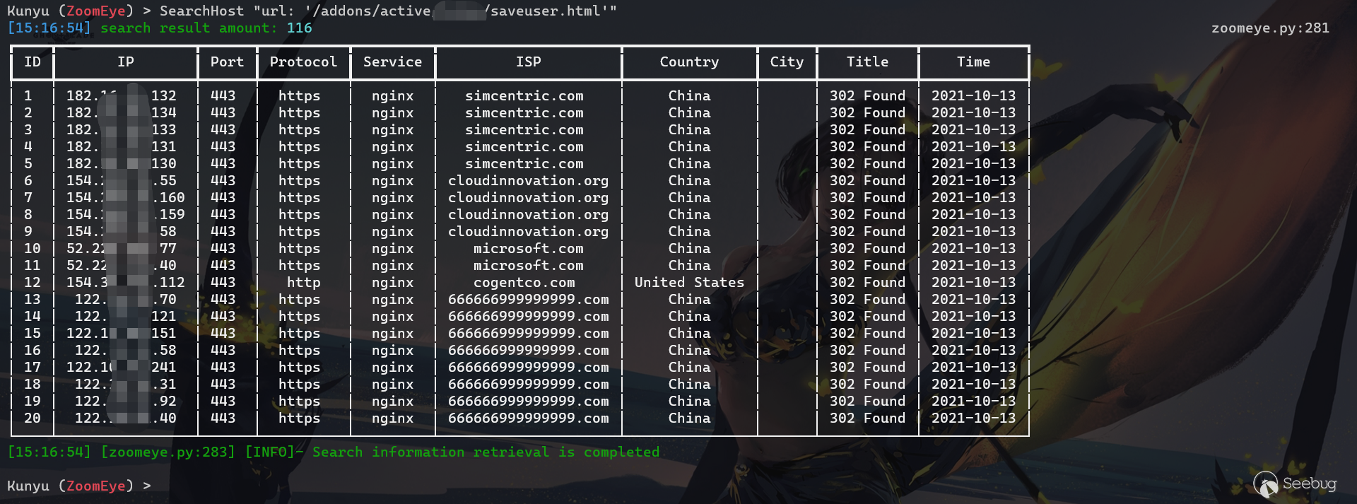 發現共匹配到116條結果,可以得知大部分為微軟云以及Cloud Innovation Limited(香港)的服務器,并且多數在國內,這里Kunyu默認顯示前20條結果。