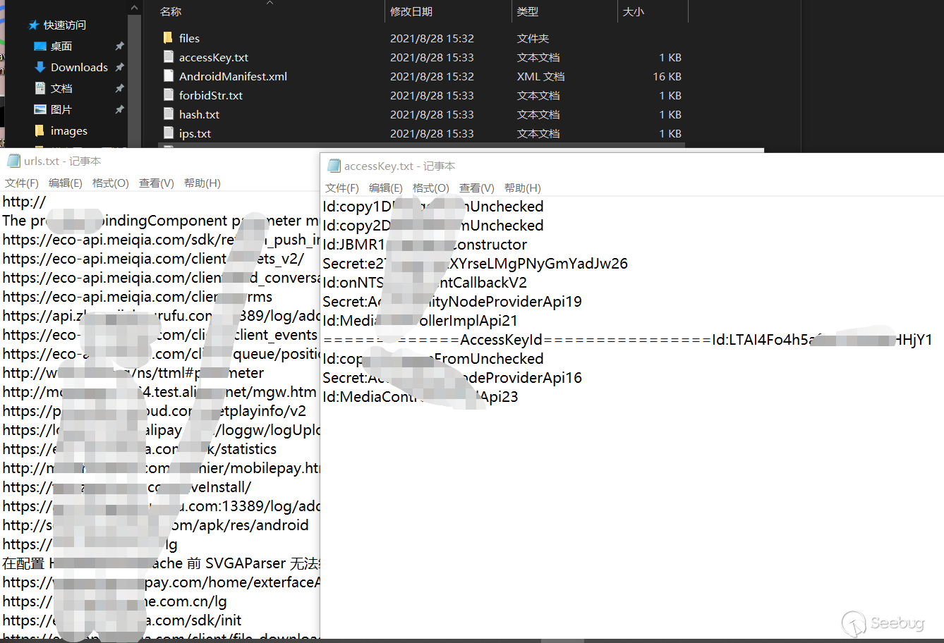 往往該類博彩站點都是以移動端APP作為主要方式使用,所以在快速滲透的過程中我們可以優先反編譯審計一下目標APP中是否存在一些敏感信息,例如提取URL拓寬戰線、獲取AK/SK控制云服務器。往往在提取APP中敏感信息會有意外之喜,下圖為一次滲透目標中提取到的一些敏感信息。
