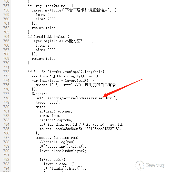 這里我們提取 url: '/addons/active/xxxxx/saveuser.html' 作為指紋匹配