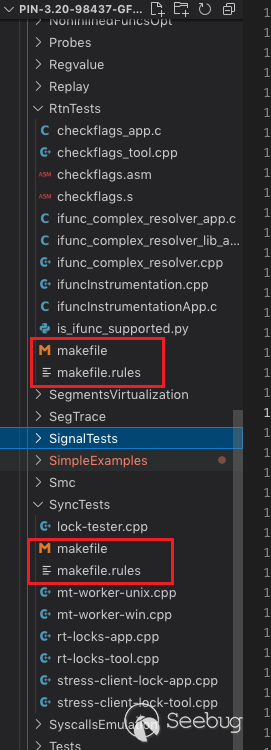 在開發自己的Pintool時,可以copy一份example目錄, 然后在makefile.rules文件中添加上自己的tool,可以以最簡單的MyPinTool為模版。