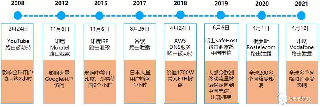 前者更多是有目的性、惡意的攻擊行為,后者多數發生在網絡變更時的配置錯誤。【圖3】列出了近10多年來的一些BGP重要安全事件。