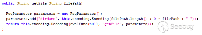 為了理解Godzilla的功能,我們可以查看/shell/payloads/java/JavaShell.class。該類文件包含提供給操作者的所有函數。下面是getFile函數的一個示例。