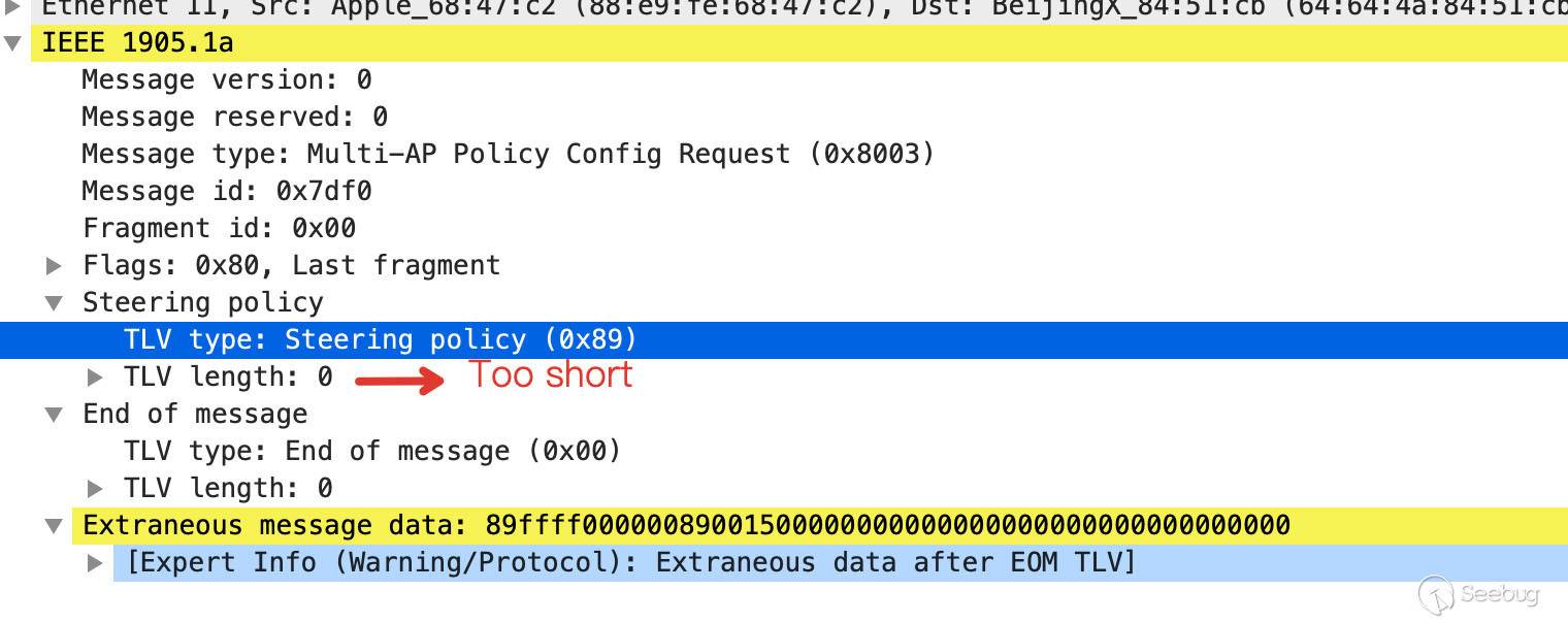 針對違背安全設計準則的問題,EasyMesh V3標準中有一節專門描述了1905協議的安全能力。例如,要隔離 Backhaul 和 FrontHaul 鏈路,需要增加消息的完整性校驗并1905包進行加密,建議廠商在實現EasyMesh時,遵守EasyMesh標準,實現1905協議的安全能力。