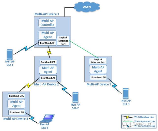 EasyMesh的架構如圖2所示,其中包含兩個關鍵鏈路,兩個關鍵角色。