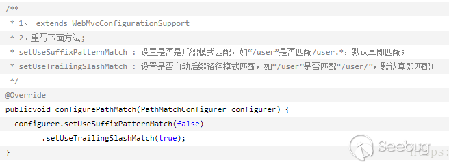 這里可能會有一個問題,添加了js后綴后是否還能正常匹配到處理類呢?在spring應用里是可以的,默認配置下的spirng configurePathMatch支持添加后綴匹配路由,如果想開啟后綴匹配模式,需要手動重寫configurePathMatch方法