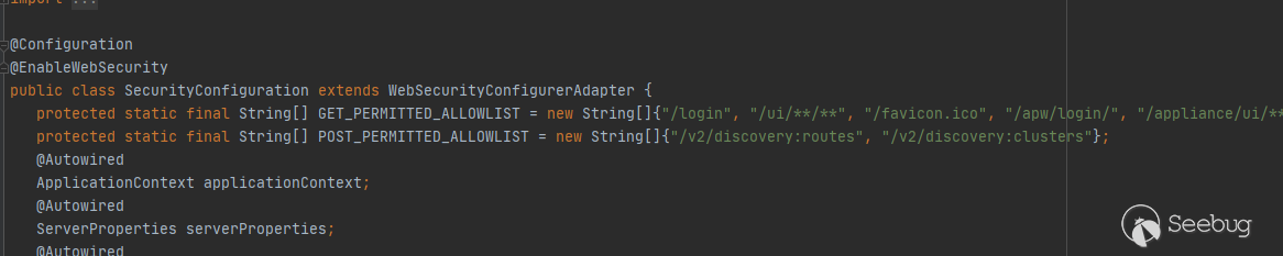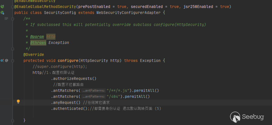 Apache Shiro、Spring Security等支持以@Configuare注解方式配置權限認證,只要按照配置去尋找,當然以上框架也支持配置文件方式配置,尋找思路一樣