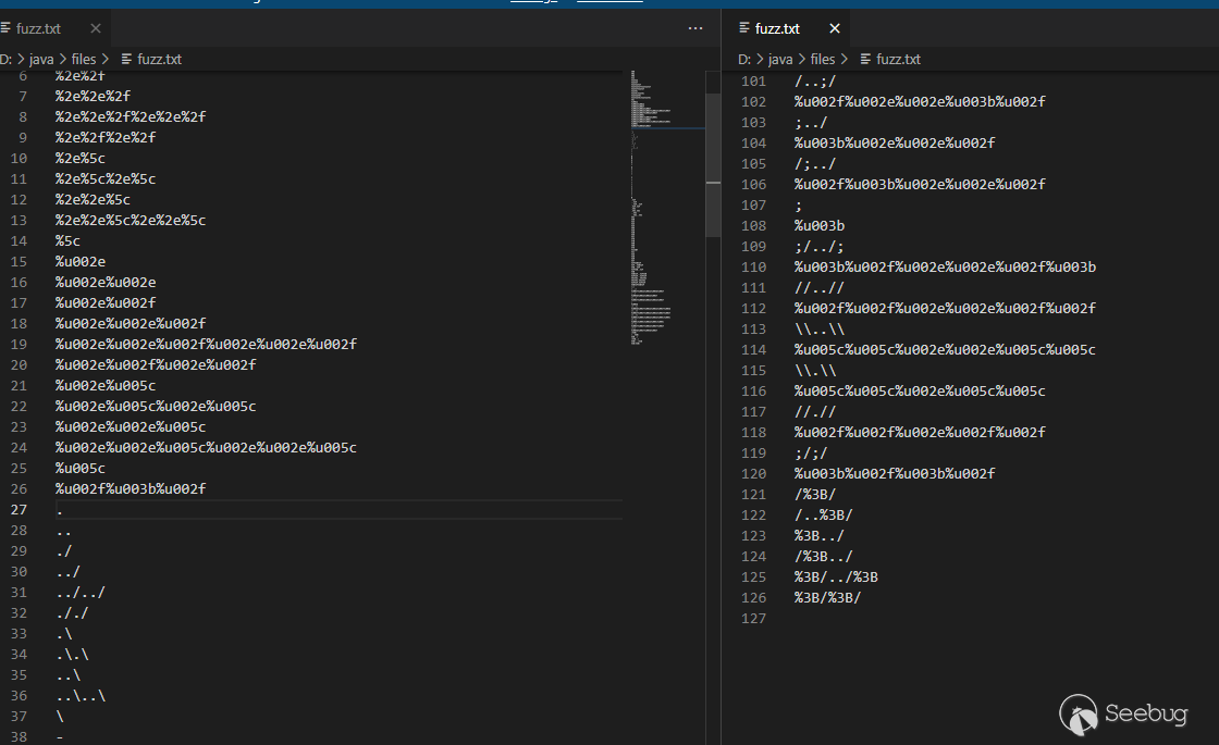 造成權限繞過的根本原因可能有多種,但是不妨礙我們總結出一些常見的繞過方式,編碼、插入某些特定字符、添加后綴等方式。遠海曾公布一個權限繞過的fuzz字典: