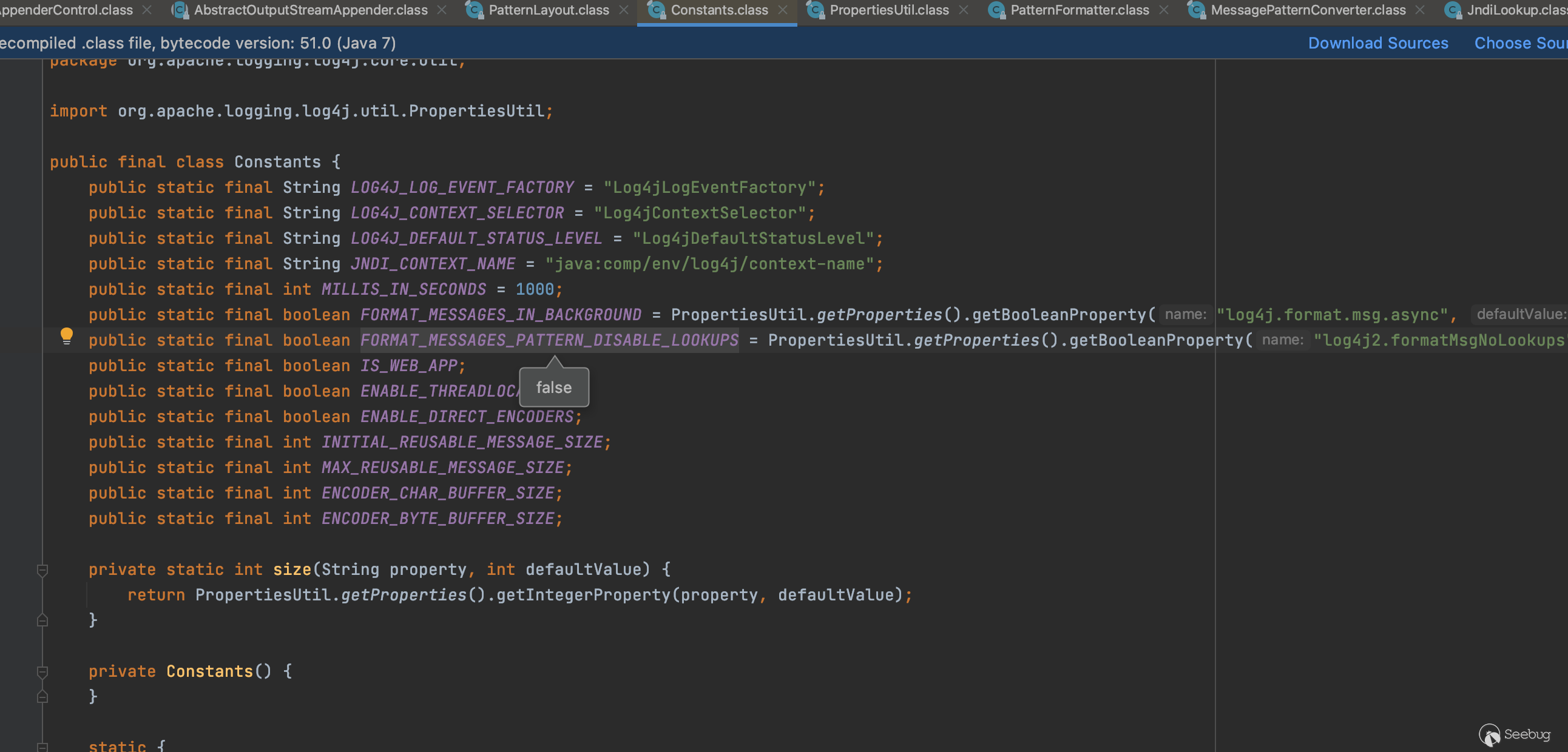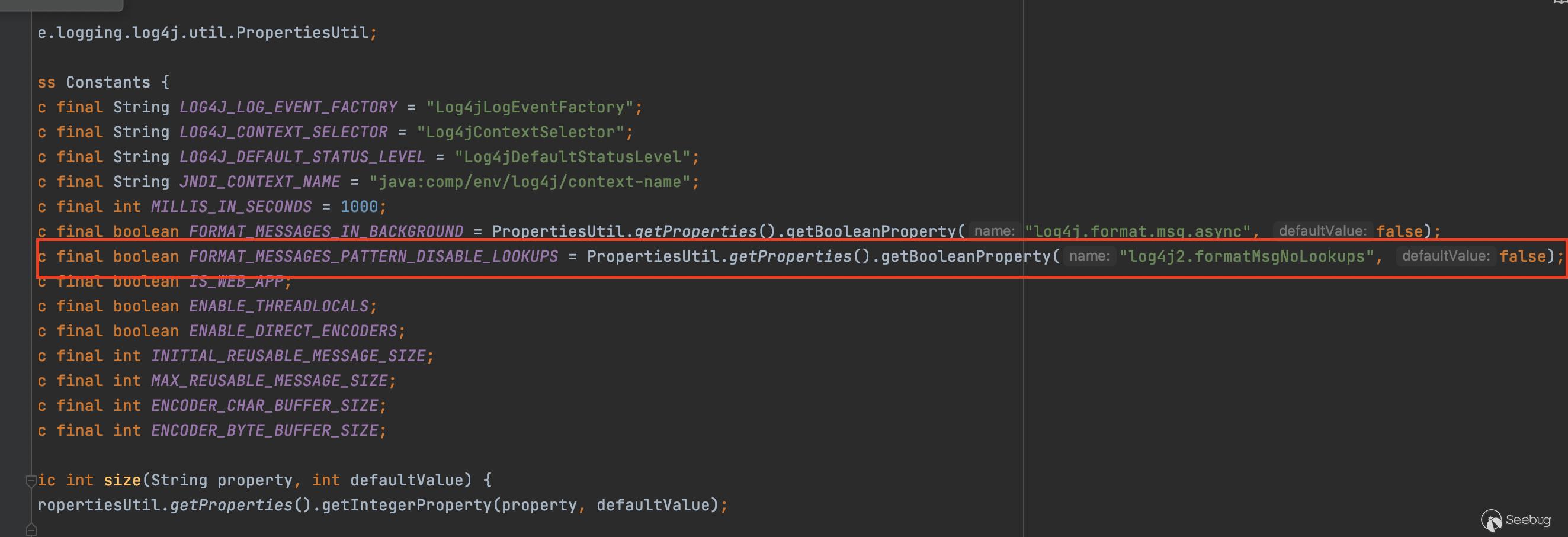 noLookups來自設置來自配置文件,默認值為false,相當于默認支持jndi。
