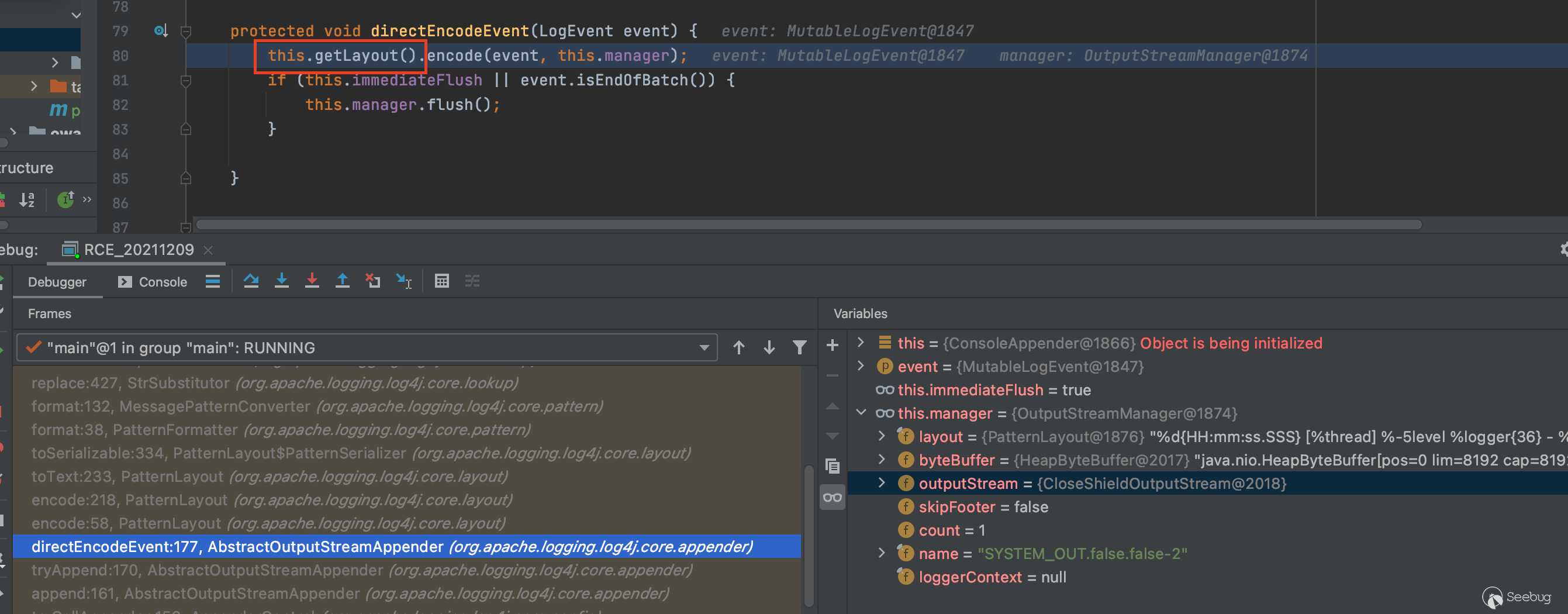 3、首先獲取Layout日志格式,通過Layout.encode()進行日志的格式化