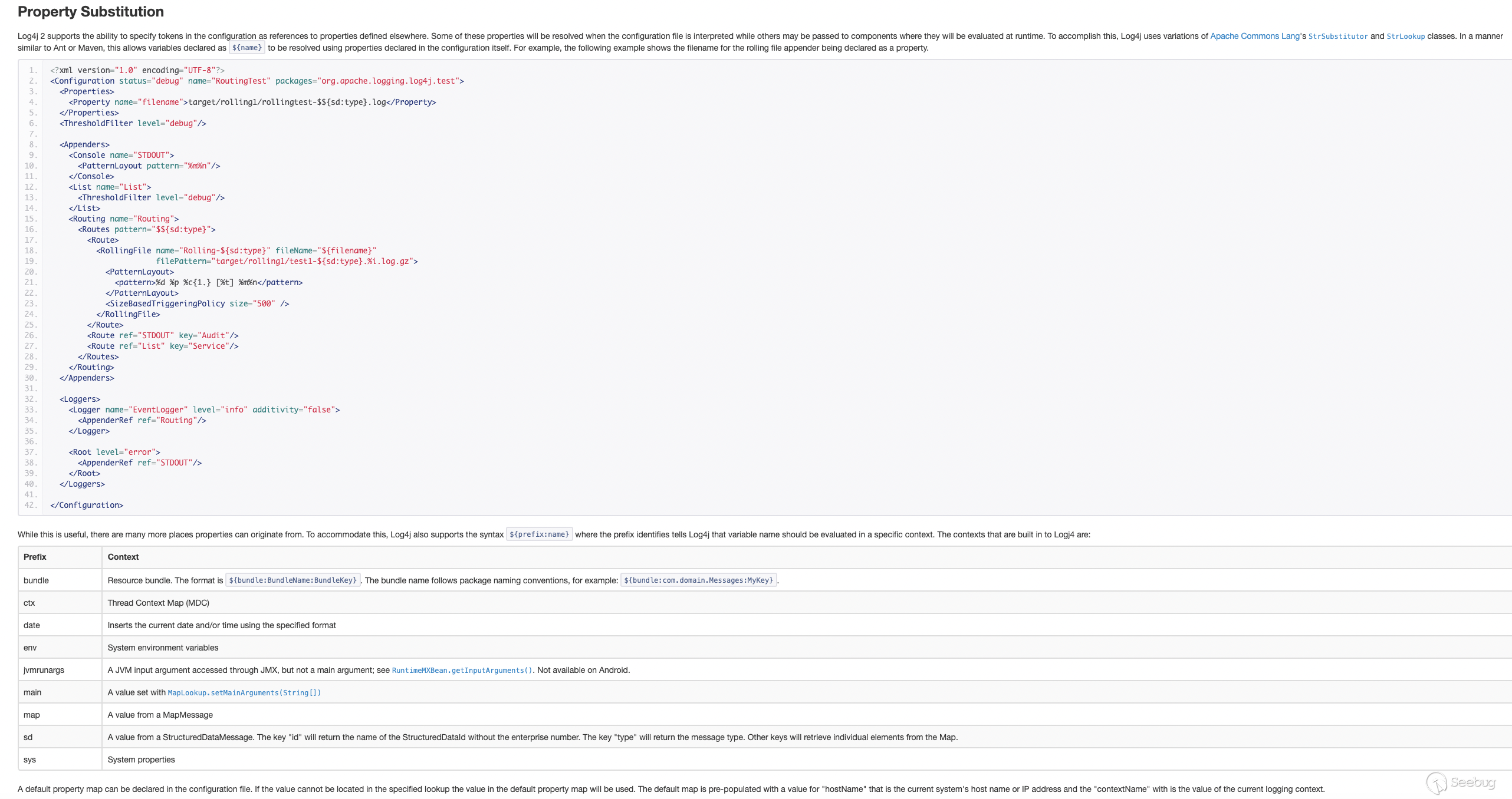 那么究竟為什么要給log4j2開發jndi功能,特地去官網看了下,開發者最初考慮到使用log4j通過本地文件加載屬性可能不夠用,某些場景需要從更多的地方加載屬性,因此設計了Property Substitution.