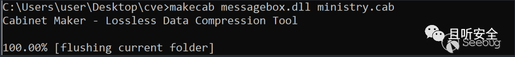 下一步我們準備替換ministry.cab文件中的文件,看能否實際執行成功,所以我們要做的就是重新創建一個cab包,就像這樣: