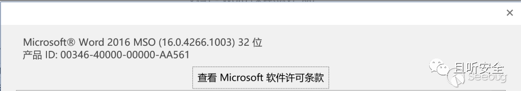 分析完網上流傳的樣本后,我準備嘗試替換cab文件中的文件后復現漏洞。安裝的office軟件版本:Microsoft Word 2016 (16.0.4266.1003):