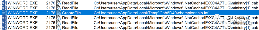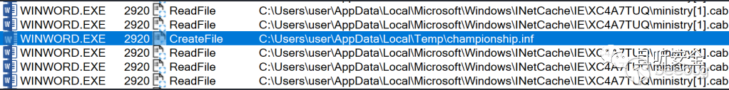 繼續往下翻,還可以看到word又在Temp目錄下創建了文件championship.inf