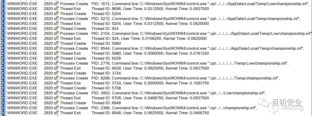 而后面則是使用control.exe 執行 .cpl:../../../AppData/Local/Temp/championship.inf,可以合理推測惡意軟件已被成功執行(惡意軟件的進一步分析已超出本文的范圍):